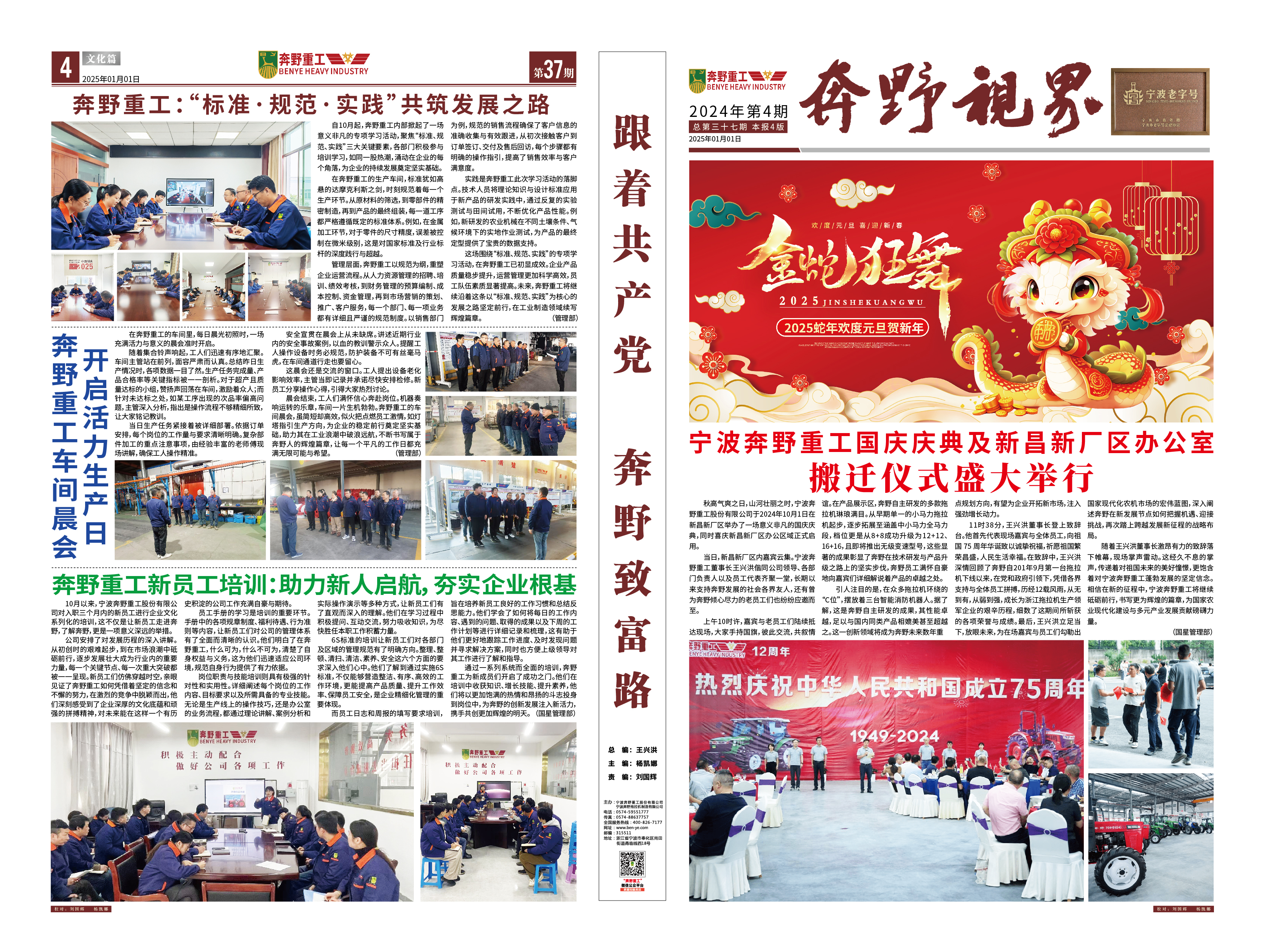 是一家非道路用農(nóng)用拖拉機(jī)整機(jī)及部件設(shè)備研發(fā)、制造、銷(xiāo)售、服務(wù)為一體的涉農(nóng)科研型生產(chǎn)企業(yè),專(zhuān)業(yè)生產(chǎn)寧波型奔野系列拖拉機(jī),是國(guó)家高新技術(shù)企業(yè)、工信部專(zhuān)精特新“小巨人”企業(yè)、浙江省知名商號(hào),寧波市級(jí)農(nóng)業(yè)龍頭企業(yè)、脫貧攻堅(jiān)-產(chǎn)業(yè)合作樣板企業(yè)、鄉(xiāng)村振興先進(jìn)集體,在寧波、新昌、吉林等地均設(shè)有生產(chǎn)基地,占地150多畝。公司現(xiàn)有技術(shù)骨干30多人,零部件自制化水平達(dá)到30%以上。公司目前擁有發(fā)明專(zhuān)利10余項(xiàng),實(shí)用新型專(zhuān)利、外觀(guān)專(zhuān)利、版權(quán)近50項(xiàng),擁有自主的知識(shí)產(chǎn)權(quán)保護(hù)品牌。公司所處的農(nóng)業(yè)農(nóng)機(jī)領(lǐng)域是國(guó)家重點(diǎn)關(guān)注和保障的、關(guān)乎國(guó)計(jì)民生的領(lǐng)域,得到國(guó)家和地方政府的大力支持,行業(yè)發(fā)展勢(shì)頭良好。