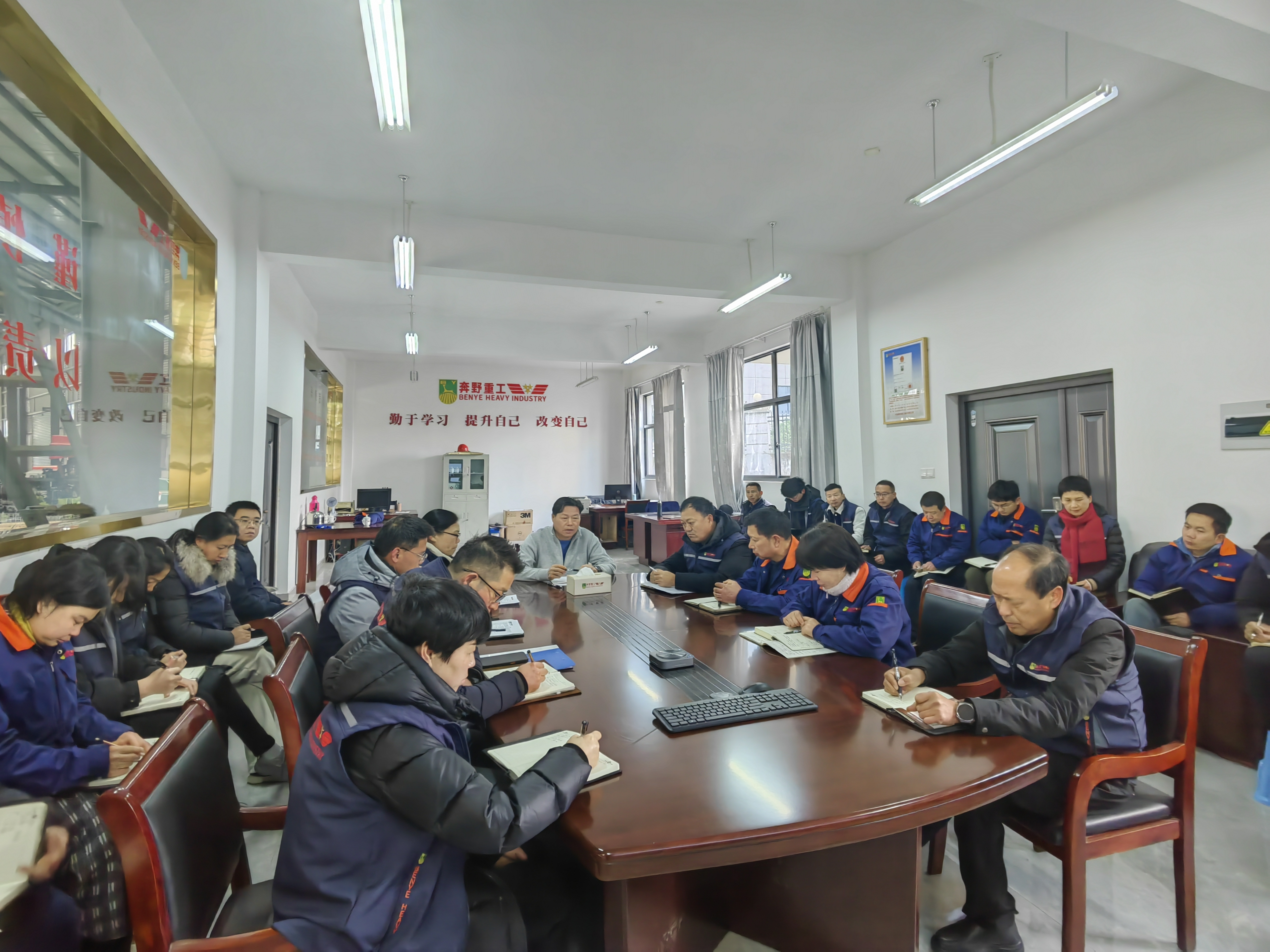 開工首日,奔野重工召開以“將安全生產(chǎn)始終放在首位,雙廠區(qū)齊發(fā)力拼搏年度目標”為主題的春節(jié)后開工會議,會議由董事長王興洪主持,各部門負責人、車間主任及全體科室人員參加。
