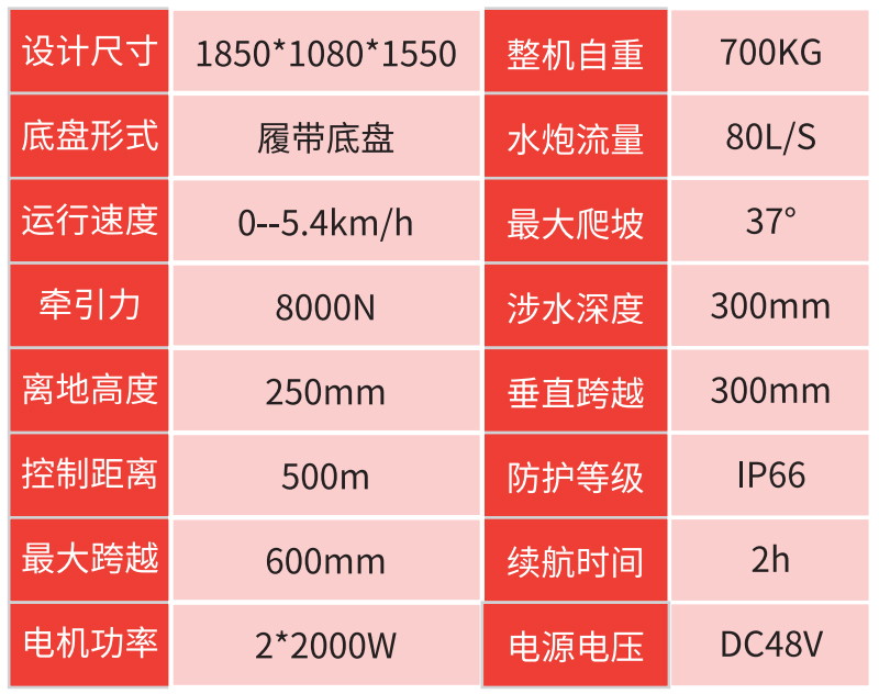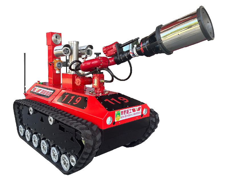 本消防機(jī)器人適用于部分火災(zāi)現(xiàn)場的火勢控制、洗消、降溫、環(huán)境信息采集等。本消防機(jī)器人具有防爆,越障能力強(qiáng),拖拽能力強(qiáng)的特點。